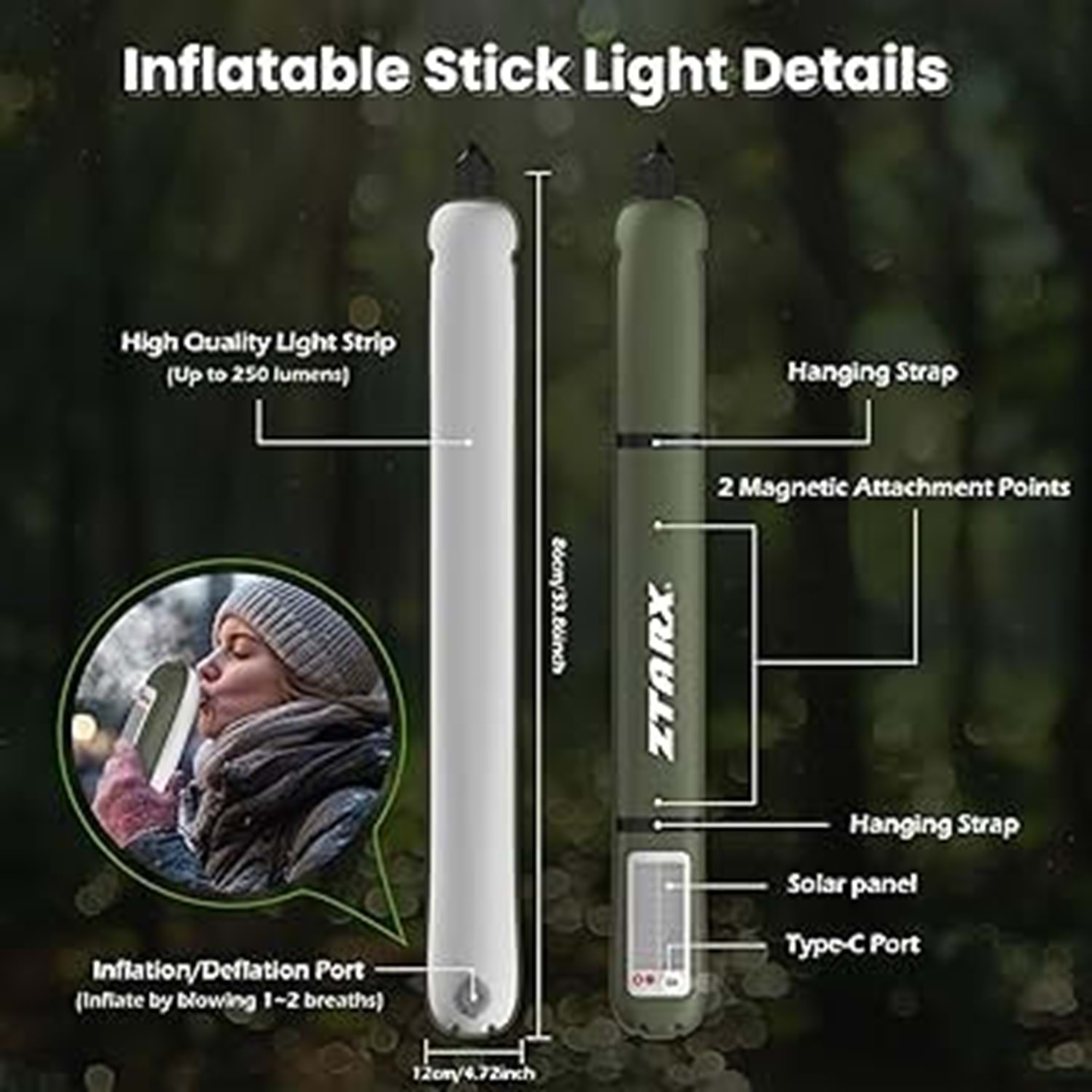 Genişletilmiş aydınlatma. Geliştirilmiş kamp tüpümüz, etkileyici bir tamamen şişirilmiş uzunluk sunar. 34 inç, önemli ölçüde genişletilmiş bir aydınlatma yelpazesi sağlar. Maceranız sizi nereye götürürse götürsün daha parlak, daha kapsamlı aydınlatma dünyasına kendinizi bırakın.