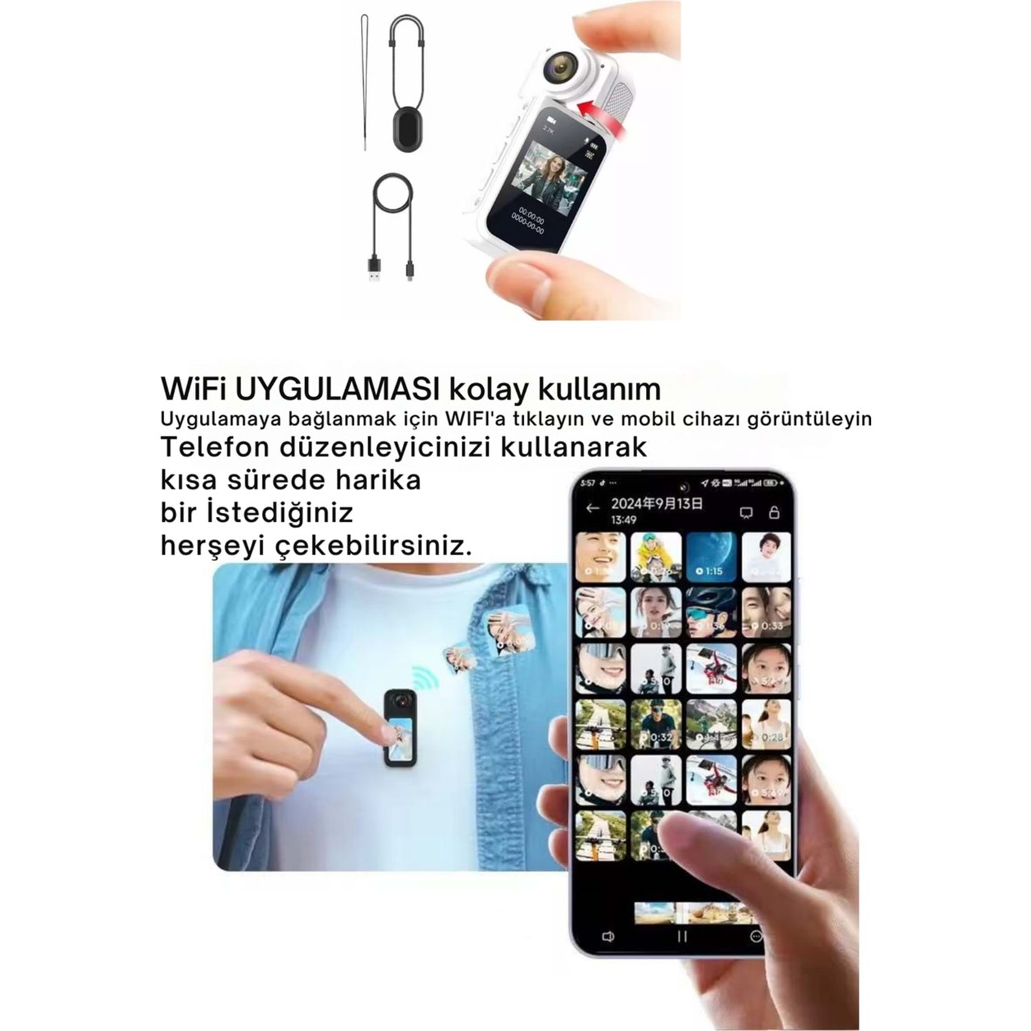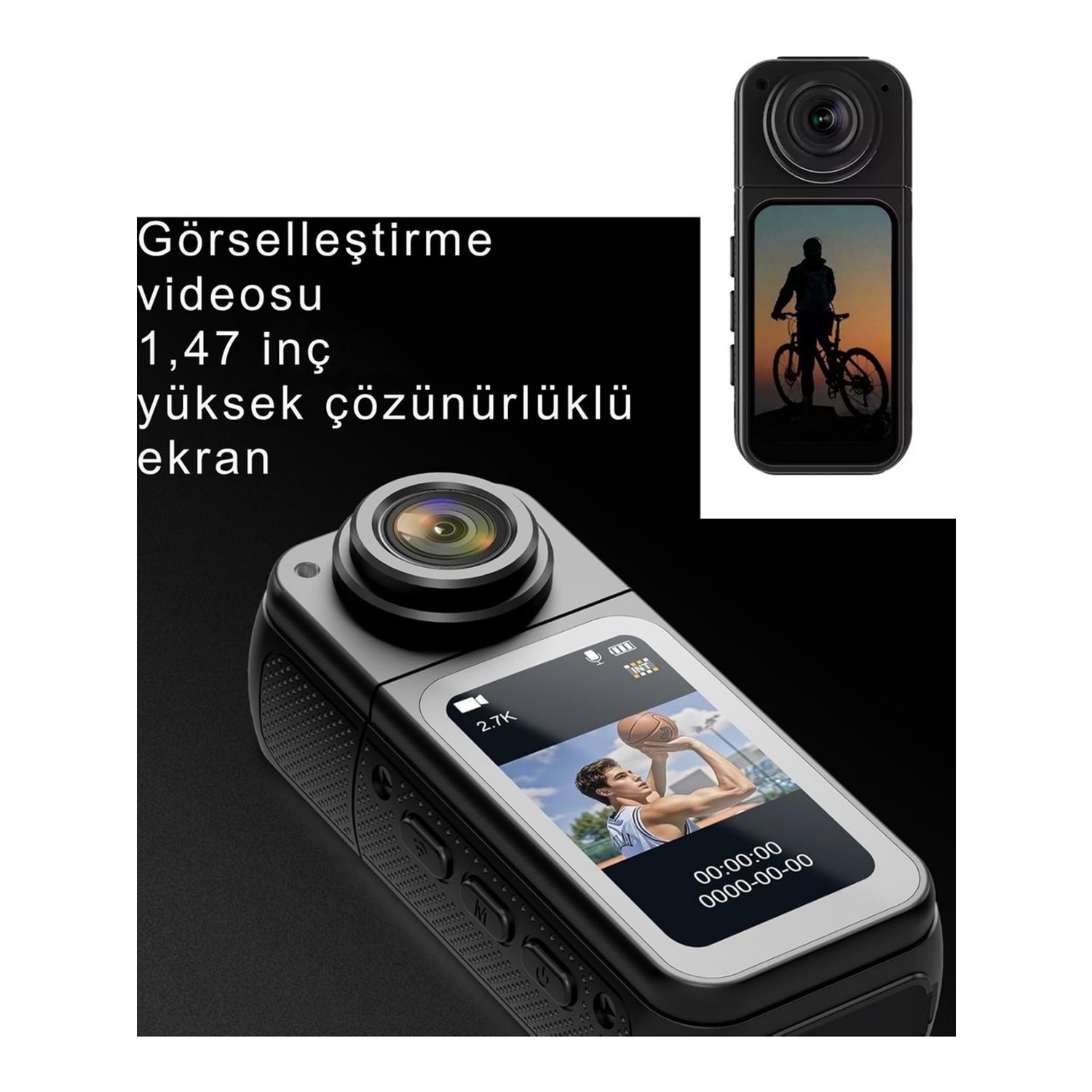 2k Mini Aksiyon Kamerası 180° Dönebilen Lens 1,47 Inç IPS Ekran Wifi Giyilebilir Vücut Kamerası Fırsat7
