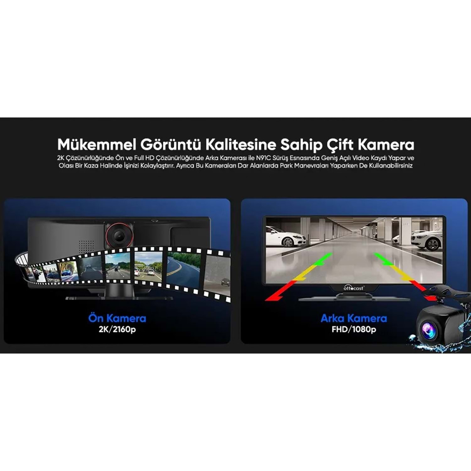 Kablosuz Apple CarPlay + Kablosuz Android Auto + 2K Ön ve FHD Arka Kamera