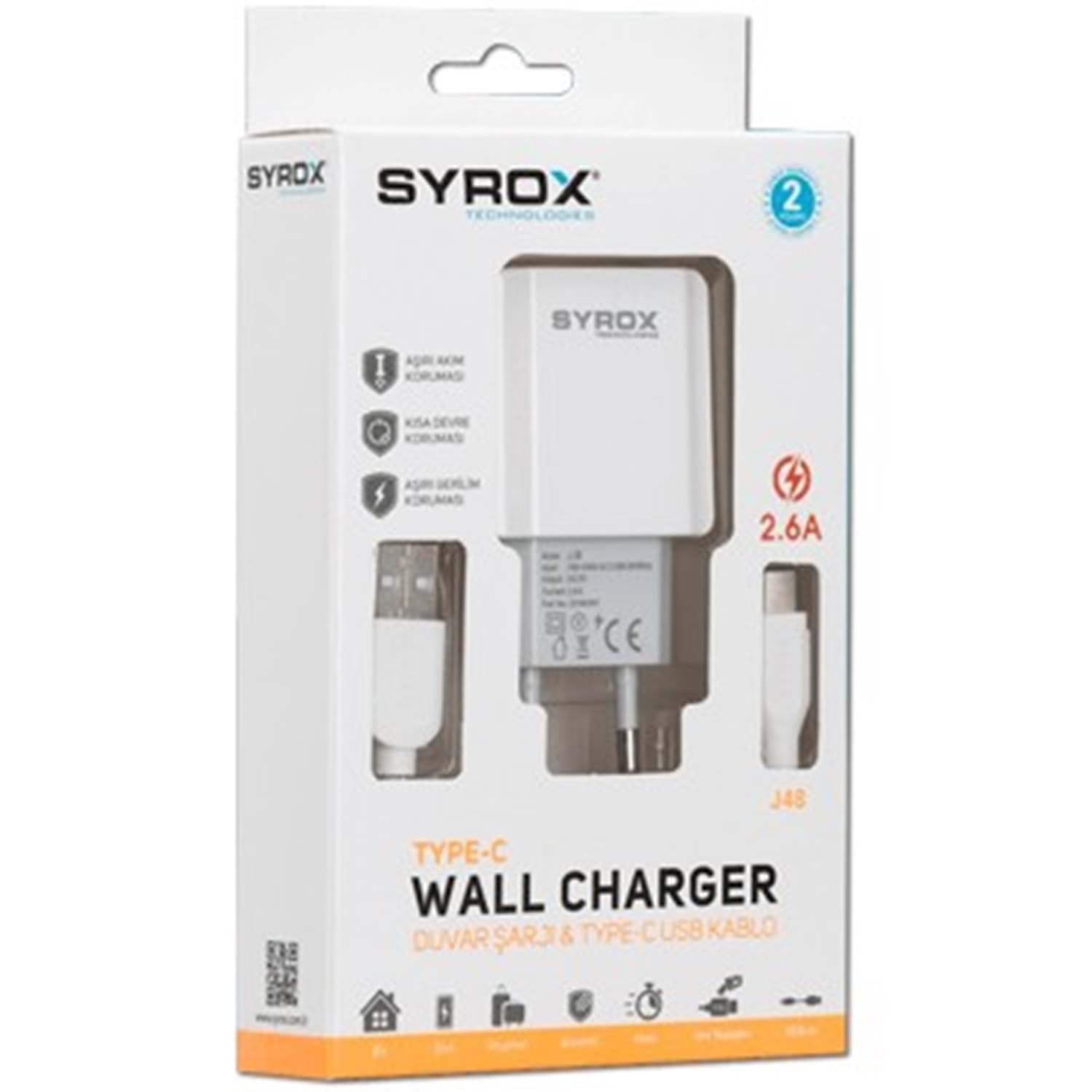 Syrox J48 Type-C Girişli 2.6A Hızlı Şarj Seti