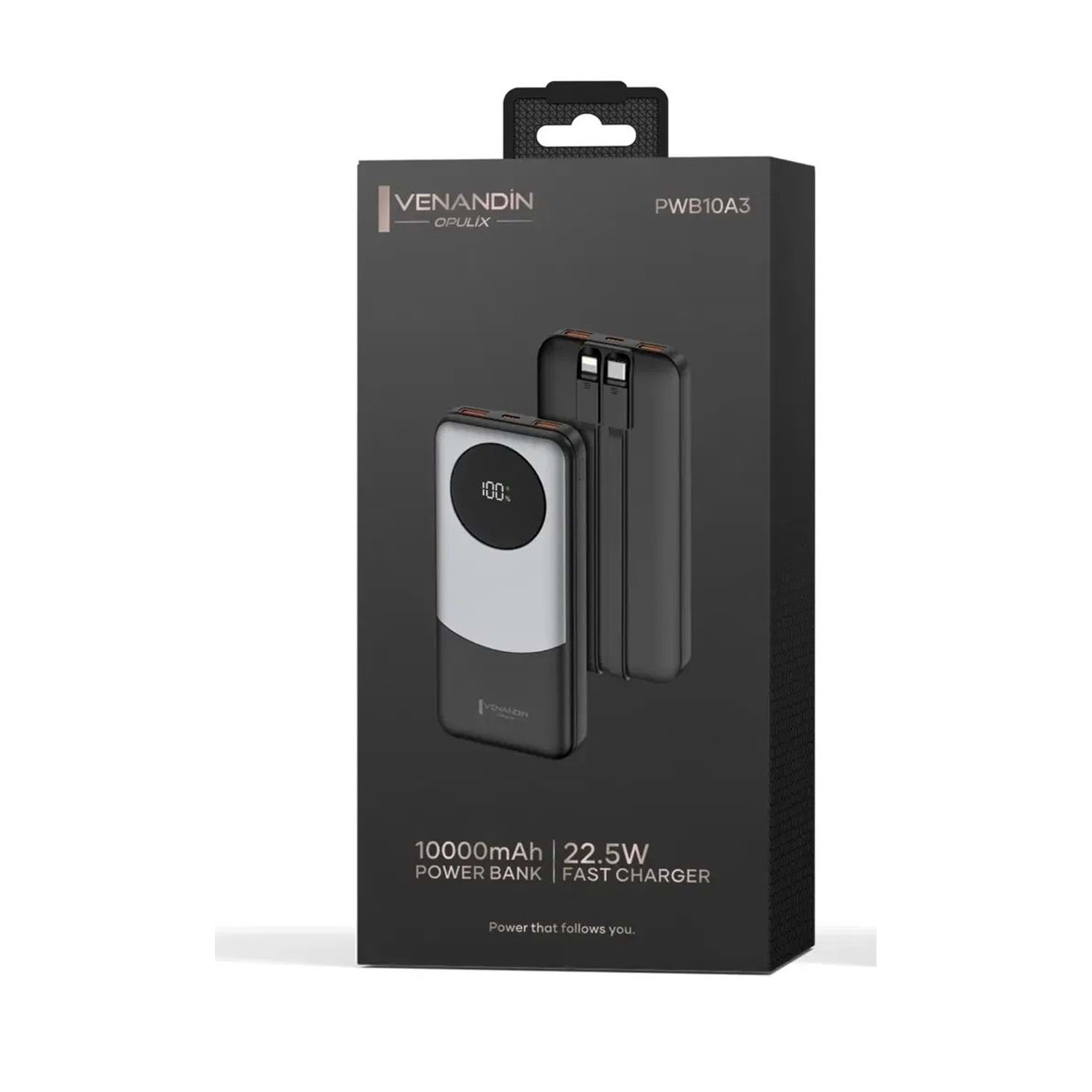 Venandin PWB10A3 10.000 Mah Led Göstergeli 22.5w Hızlı Kendinden kablolu Powerbank